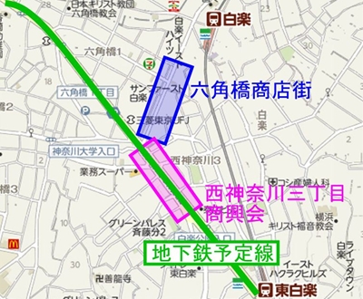 石川会長によれば、当時の横浜市営地下鉄の計画案は、「横浜上麻生道路」に沿ったものであったらしい。したがって、反対していたのは、その道路周辺にある、西神奈川三丁目商興会ではないかとのこと。