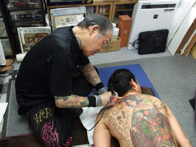 実は彫師でもあったYさんは、この世界で師と仰ぐ「先生に彫っていただきたくて都内から通っている。どんな風に仕上がっていくのか楽しみ」とのこと。週1ペースで26回目の来店という。