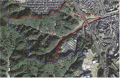 池子住宅地区周辺の空撮(横浜市政策局基地対策課のウェブサイトより)