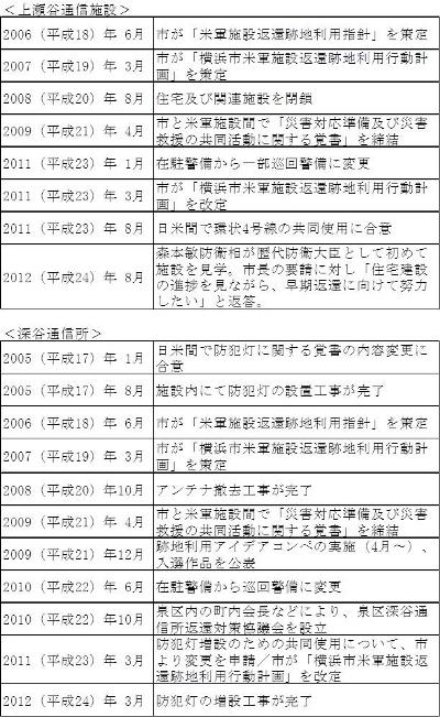 返還合意後、2つの基地に関連してどのような動きがあったのかを調べた。主な内容は以下の通り。