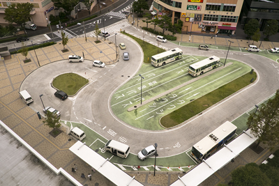 西口駅前のターミナルや駐輪場。ゆったりした広さ