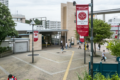 東戸塚駅東口。頭上にあるのは、駅とオーロラシティをつなぐ2階建ての遊歩道