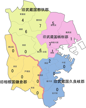 横浜市の中でも都筑区や港北区といった北部地域に多く、南部地域には見当たらないのも特徴といえる。