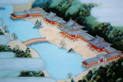 そして、1983(昭和58)年から15年間かけた発掘調査の成果により、壮麗な二層の本堂の両脇に阿弥陀堂と薬師堂を配置し、お堂の前には大きなひょうたん型の池が広がる大寺院の姿が浮かび上がって来た。