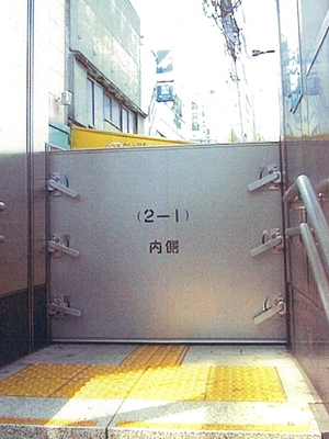 止水板設置時の地上出入口の様子(横浜市交通局提供)