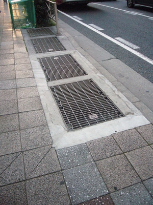 通気口の真上に立つと、地下鉄が通過する際にはゴーッという音とともに風が地下から吹き抜けてきて、この下に地下鉄が通っていることが分かる。