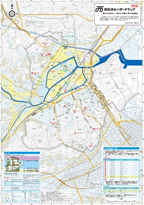 浸水が予測される箇所を示す洪水ハザードマップ・西区版(横浜市ウェブサイトより)