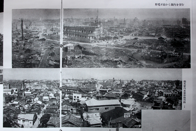 上が横浜大空襲直後の写真で下が「復興五年を顧みる」発行当時の写真(横浜市史資料室より)