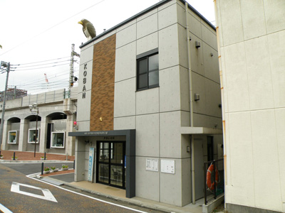 黄金町交番の屋上に、何やら鳥の置物が置いてある