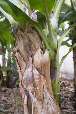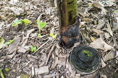 枯れたバナナの切株。隣の脇芽はもうかなり育っている