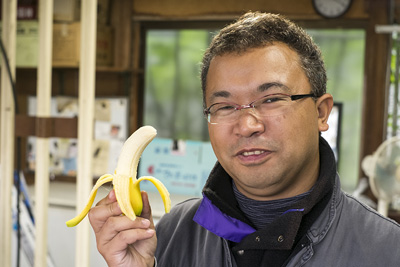 この時期は収穫が1~2ヶ月に1度。しかも追熟はタイミングが合わせにくい中、金子さんは食べ頃のバナナを試食させてくれた。