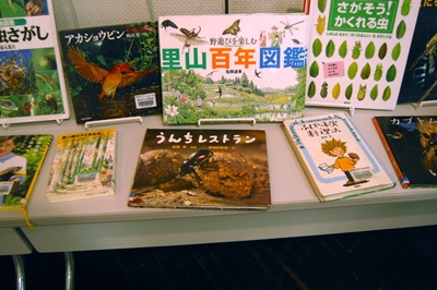 1階展示コーナーでは季節の本など子どもの読書を推進する図書がピックアップされていた