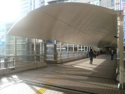上大岡駅とビルをつなぐ歩道橋に、お地蔵さんのプレートが埋め込まれていますが、ここに置かれている理由は?(えんどさんのキニナル)/京急百貨店前のこのオブジェは何?(黒嬢さんのキニナル)