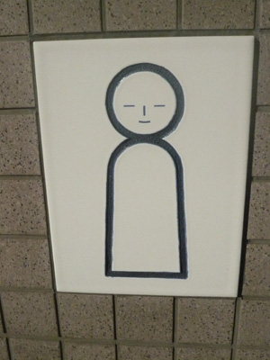 そっとお地蔵さんを触ってみると、とってもかたくてびっくり!タイルのような素材にブルーの線で描かれ、壁に埋め込まれている。