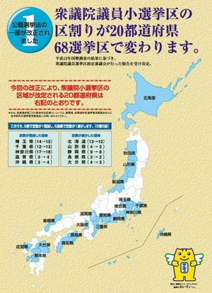 小選挙区はこの時に決められたもので、1票の格差を少なくするため、各選挙区の人口にできるだけ差がなく、かつ、隣接する行政単位(市区町村など)のグループで構成された。