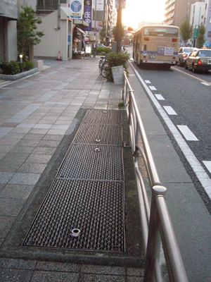 浸水防止機が取り付けられた地下鉄の地上通気口