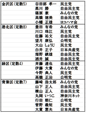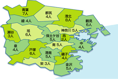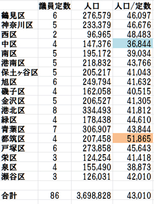 横浜市会の議員は住民約4万3000人に一人の割合で、中区と都筑区では1票の格差がおよそ1.4倍