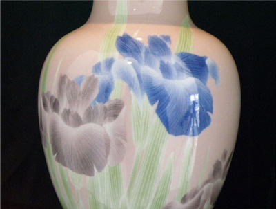左側の後期の作品は、磁器独特の透き通った色彩が施されている