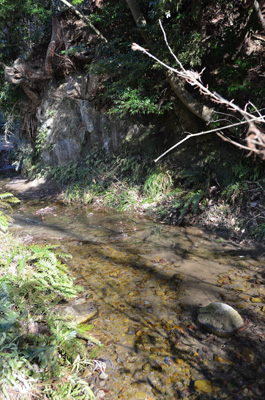 大岡川水源近くの沢。周囲はハイキングコースになっている