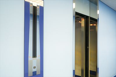 通路にエレベーターの模型が展示されていた