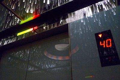 扉上部に速度計。40階あたりで最高速になった
