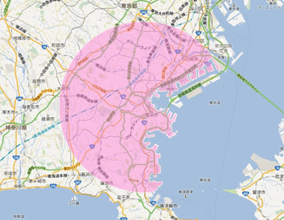 横浜駅~鎌倉駅間と同じくらいの距離の範囲(Googleマップより)