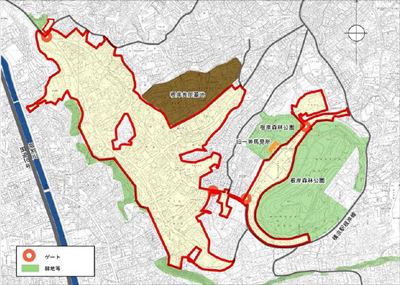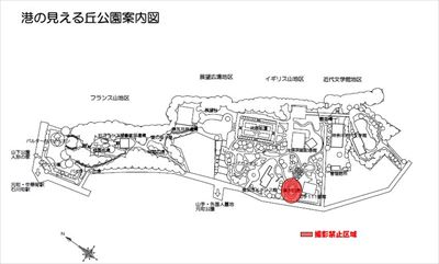 根岸森林公園の全体平面図。撮影禁止区域はこの一帯!