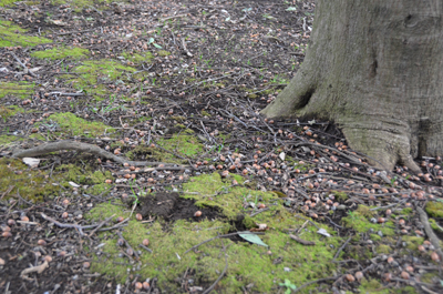 木の根元にはドングリ。ちびっこたちが喜びそう