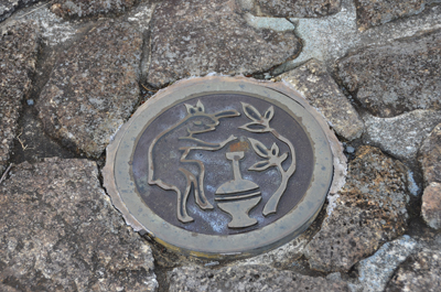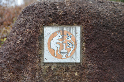 公園名を示す碑にはウサギが描かれたタイルが埋め込まれている。さらに、同じものが園内の広場にもあった。