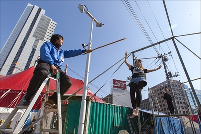 目隠しをしても空中ブランコができるほど磨かれた技を持ち、どんな環境でも自然と人を「楽しませよう」と工夫をしている団員が集結していた!