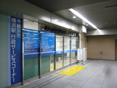 ナゾの電光掲示板は「横浜市横浜駅行政サービスセンター」近くの壁に存在