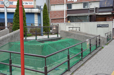 撤去の決まっている鶴ヶ峰の池と滝。すでにネットがかけられている