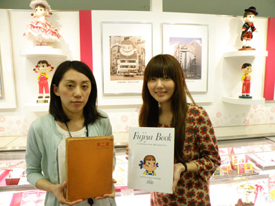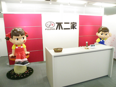 最初は不二家フードサービスに連絡をしてみたのだが、「全体の社史に関わるものは不二家で」ということになり、都内にある同社を訪ねることに。出迎えてくれたのは、ペコちゃんとポコちゃん。子どもの頃の思い出がいろいろとよみがえり、何だか懐かしさを感じる。