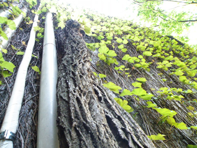 西鳥羽さんによれば、手入れや水やりなどは、特にしていないのだとか。全くの自然の理によって、隙間なく、建物を埋め尽くしてしまったらしい。