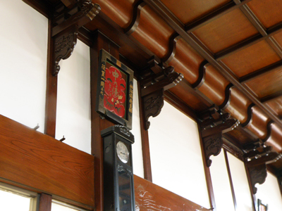 中央の朱色の看板をよく見てみると、ニンベンのない「中乃湯」の文字が書かれている。しかし、せっかく造ってもらったものだから・・・ということで、本当は誤字なのだが、創業以来飾り続けているそうだ。