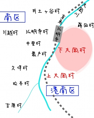 現在の南区大岡のあたりは、かつて「下大岡村」と呼ばれていた。村々の合併や、横浜市への編入を経て消失した。