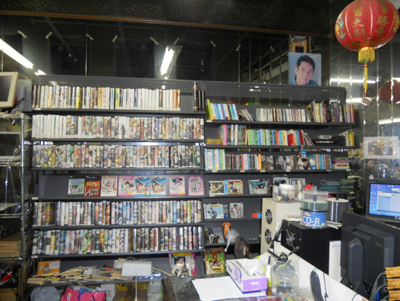やっとのことで店内へ。売場入口近くのレジでは店員さんとスーツを着た女性が、何やら話をしている。が、中国語で意味はサッパリ。見渡してみると、少々薄暗いことと、倉庫っぽい雰囲気はあるが、意外と普通の物産店?と思いきや、食品のほかに中華圏のDVDやVHS、CDなどがずらり。