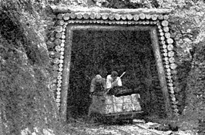 (4)亜炭層は30-35センチの厚さ。空気穴(立て坑)を二本掘り、横穴を約1000メートル掘った。