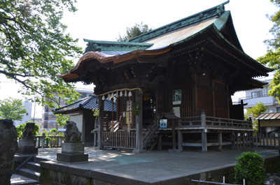 根岸駅から向かうと、掘割川(ほりわりがわ)を渡る直前にある八幡神社だ。