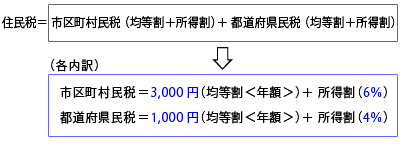 「均等割」とは、所得金額の多少にかかわらず均等の金額によって課税される住民税のことで、「所得割」とは、前年中の所得金額に応じて課税される住民税である。