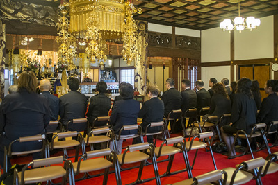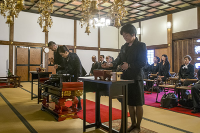 ビニール袋に入った活きたうなぎが三方に乗せられて本堂に置かれる。うなぎ供養のお経が上げられ、お焼香が行われる。食や生の持つ本質について改めて考えさせられるひとときだ。