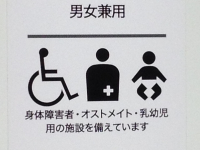 人工肛門・人工膀胱造設者のためのオストメイト対応トイレのマークも。商業施設などではまだ普及途上中のこの設備も、駅構内のトイレではすでに常識だ。