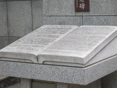 この碑の特徴は、文字による解説が詳しいことである。書物の形に説明文が、日本語と英語の両方で書かれている。
