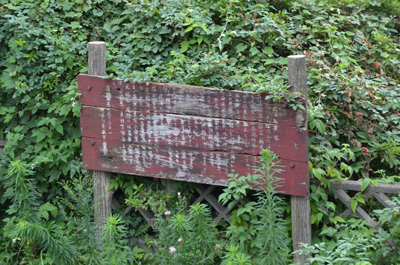 キニナルにあった看板。読めないうえ、国土交通省の寮の敷地内なので近付くのも無理