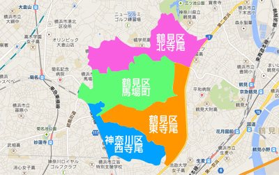 東寺尾、西寺尾、北寺尾と3つの町が存在し、西寺尾だけが神奈川区、東寺尾と北寺尾が鶴見区に属している。