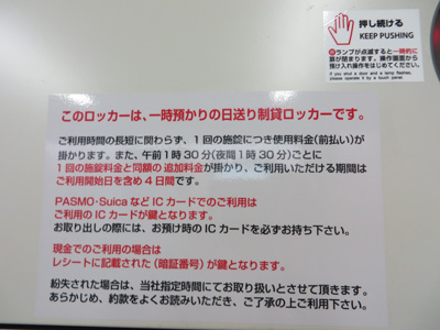 ロッカー上の約款(やっかん)を見ると、管理会社の電話番号が記載されているので問い合わせてみる。すると、やはり「日送りは26時」とのこと。