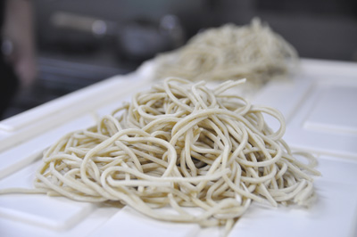 製麺機と裁断機で可能な限りの太麺に調整