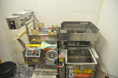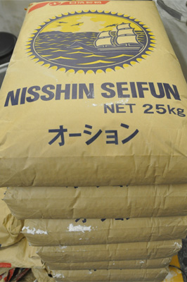 「粉はオーションですか?」と、すかさず千葉。これは、二郎と同じで100%オーション(日清製粉の強力粉)であった。製麺機でミキサーされ生地は食感を良くするために、一晩ねかせてなじませ、裁断機で切ってようやくでき上がる。