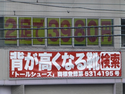 背が5~12cm高くなる靴を販売。はいても見た目にはわからない。横浜と銀座にある店舗とネット販売で日1500足近く売れるがビル広告の効果は定かでない