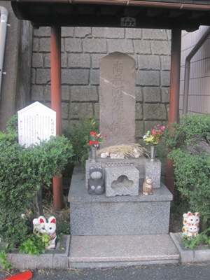 市営地下鉄線踊場駅にある碑。何匹ものネコ(?)に守られている